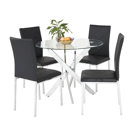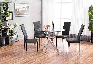 Amazon De New Chrom Rund Glas Esstisch Mit 4 Schwarz