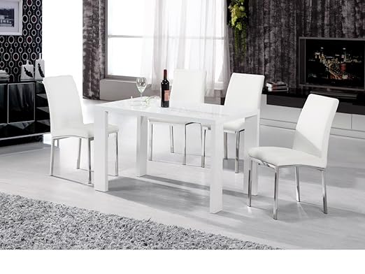 Peru Weiss Hochglanz Esstisch Und Vier Stuhle Aus Chrom