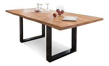 Details Zu Esstisch Wildeiche Massiv Baumkantentisch 180x100cm Metallfusse X Gestell Silber